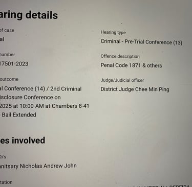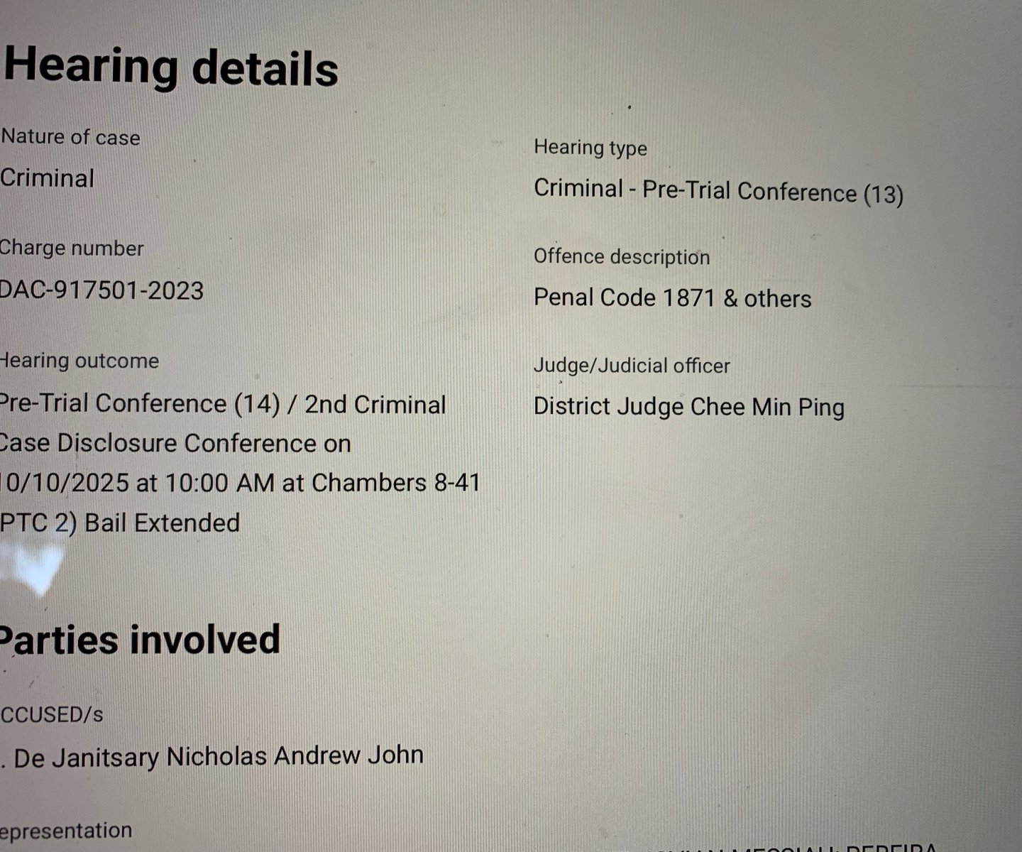 So yet again Nicholas Andrew John de Janitsary and his cases are back in court, now the much postponed pre trial conference number 11 is scheduled for the 18th of June at the Supreme Court.It appears Janitsary has run out of delaying his trial, but not out of complaints that he is being defamed by us.The problem is that he cannot tell the truth ever , and even his high priced (unpaid) lawyers both in Singapore and London stopped representing him, yet mysteriously a web provider recently received a legal letter on the fantasist and fraudster's behalf, from his London law firm, who have had nothing to do with him since November 2023 , an interesting coincidence is that Janitsary is charged with forging a legal letter from the same firm following his arrest.So currently on bail, hanging around the Shangri La hotel during a ministerial security conference , pretending he was a delegate.Gets stopped by a security detail as he is suspicious! LMFAO. Gets expelled from said hotel and told not to return tried to lie his way out of it with his usual BS , forgot to tell them he was currently on bail , yet seems to think that his actions have no consequences as usual for him , if you commit further criminal offences whilst on bail, your bail is revoked.The PTC on the 18th may be a lot more interesting than normal.