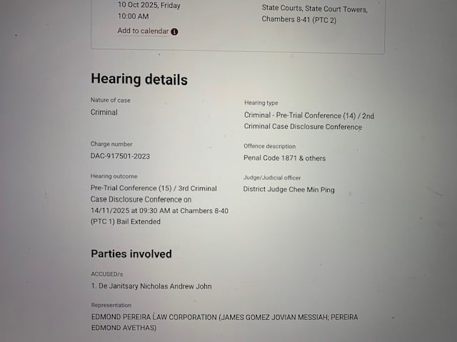 Fun fact concerning Nicholas Janitsary, October 2023 was not his first arrest at an airport trying to flee a country, back in 2015 at Dubai he was also arrested for bouncing cheques in the Emirates, it was only due to a then friend who paid his car hire purchase bill, that he was let out of jail.The friend then discovered that everything Janitsary had told him ever was a lie, when the Emirati security services went to question him about his business relationship with Janitsary, there was no Special Advisor , no relationship at all with either the Ruler of Dubai or the UAE government, by this point Janitsary had fled Dubai leaving everything behind, his clothes and belongings in a flat he rented (though he claimed he owned) as he was terrified , as his impersonation of a senior government official with phoney e mails and forged documents were uncovered.Needles to say his ex friend who had been in business in Dubai for many years also had to leave and return to the UK, his Emirates life in ruin thanks to Janitsary.Janitsary has avoided ever transiting the Emirates ever since as he is on a stop and detain list.With his current criminal charges the Singapore police have been talking a lot to the Emirates authorities and sharing documents found on Janitsary's computer when it was seized including various forged Emirates bank documents and various forged documents on the private office of the Ruler of Dubai.Janitsary is terrified that the Emirates may also file charges and an extradition back to answer more criminal charges relating to his time there as well as the deception of Millbrook Partnership in the early 2000's.